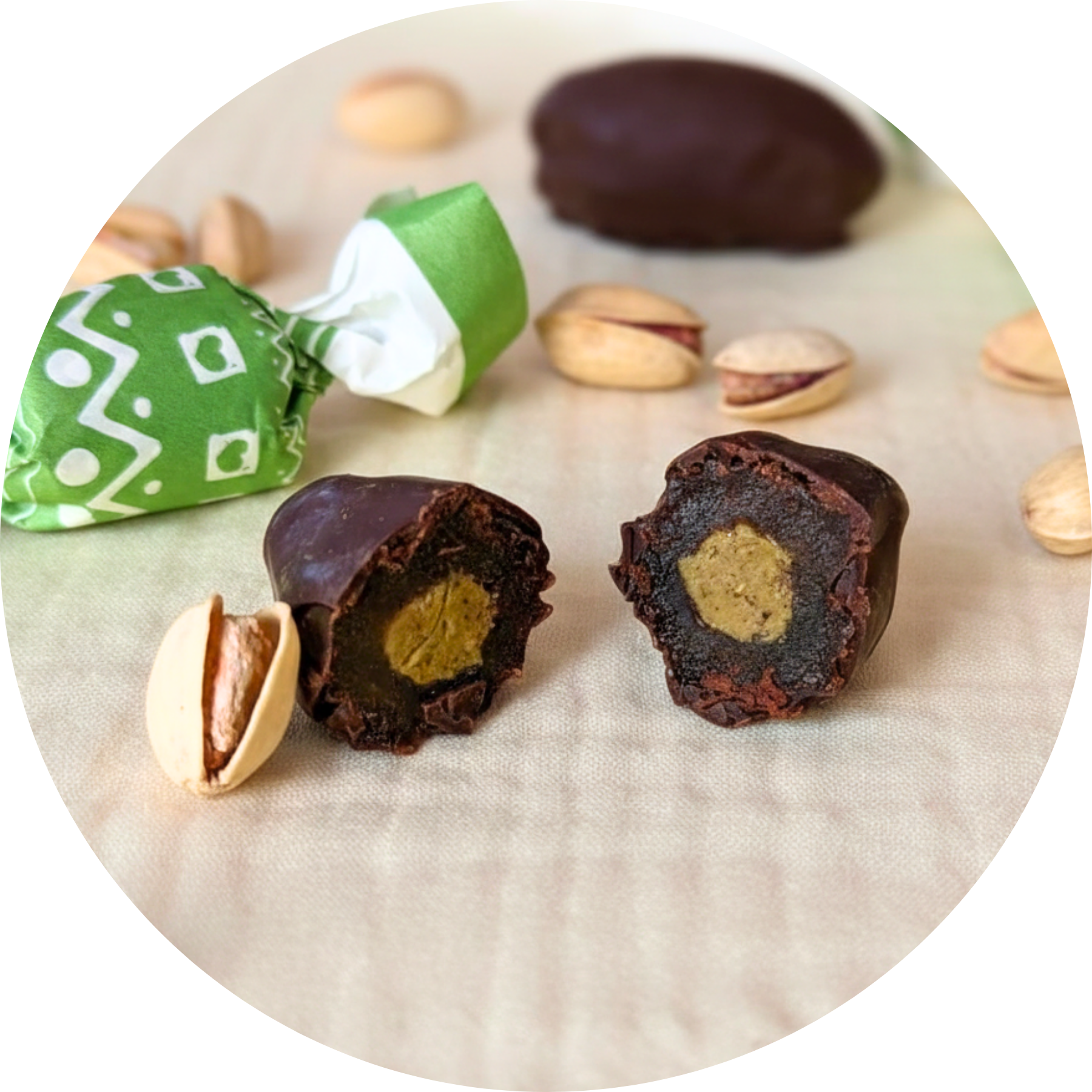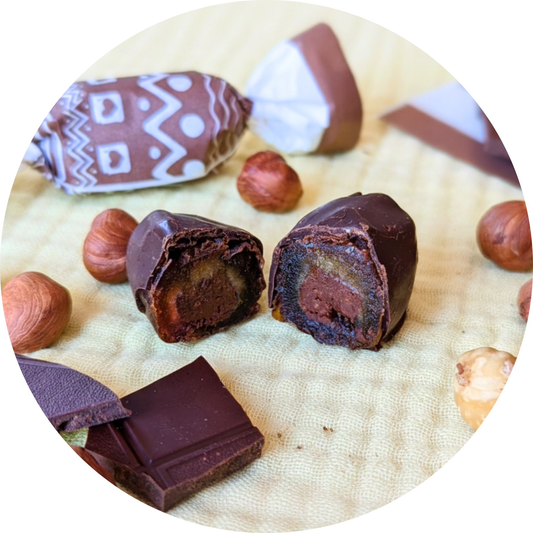 Unsere Dattelpralinen sind frisch! Sie werden jeden Tag hergestellt und sind dann 10 Wochen ab Produktion haltbar.