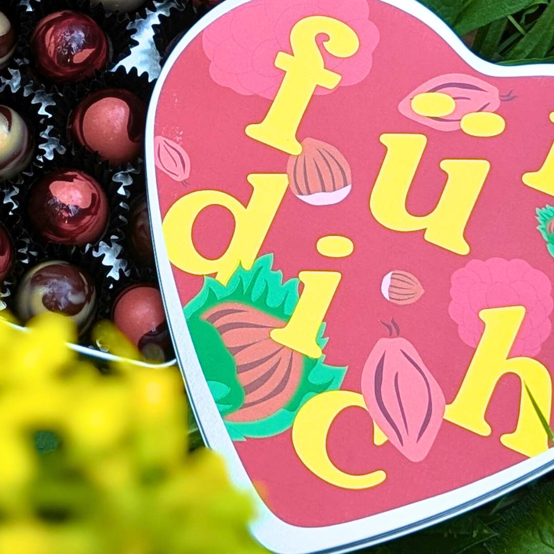 Was für leckere Pralinen! Alle in einer liebevollen Herzdose verpackt. Mehr davon bitte.