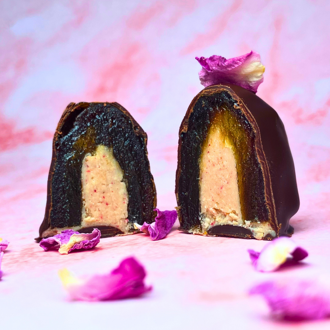 Oma wäre stolz auf diese Kreation! Denn sie schmeckt wie ihr weltberühmtes Mohnkuchen-Rezept. Halbierte cremig-karamellige Medjool Datteln gefüllt mit einer süßen Creme aus Mohn und einem Hauch von Vanille, umhüllt mit knackiger Schokolade aus 100% Kakao. 9 Pralinen, 100g.